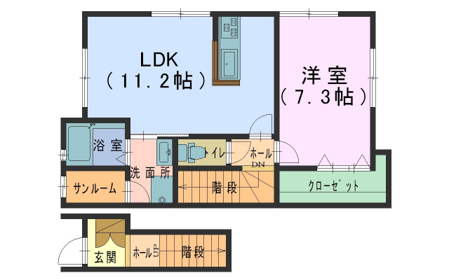 敷金0ヶ月/礼金73,000円/2階/木造2×4/42.04m2