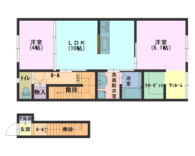 敷金0ヶ月/礼金0.5ヶ月/2階/木造/58.38m2