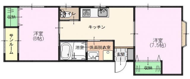 敷金0ヶ月/礼金75,500円/2階/木造2×4/46.28m2