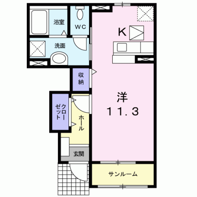 ビオーラ 101 5.3万円(共益費:5,000円) 1R 金沢市近岡町224-1 敷金0ヶ月/礼金40,000円/1階/軽量鉄骨/32.77m2 築19年/即日入居可