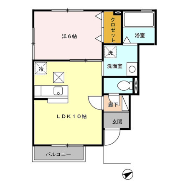 敷金0ヶ月/礼金75,500円/2階/木造2×4/42.04m2
