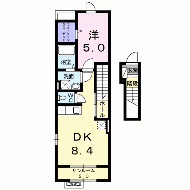 敷金0ヶ月/礼金0.5ヶ月/2階/軽量鉄骨/22.68m2