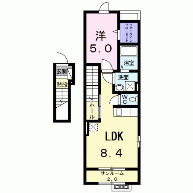 敷金0ヶ月/礼金1ヶ月/2階/木造2×4/42.04m2