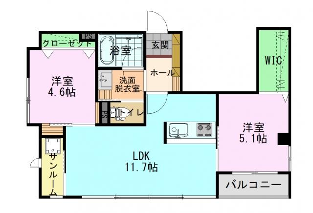 敷金0ヶ月/礼金52,000円/2階/軽量鉄骨/48.57m2
