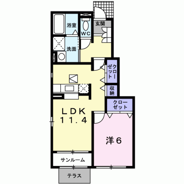 敷金0ヶ月/礼金60,000円/2階/軽量鉄骨/41.15m2
