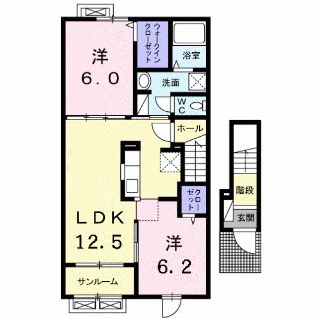 敷金0ヶ月/礼金89,500円/2階/木造2×4/61.88m2