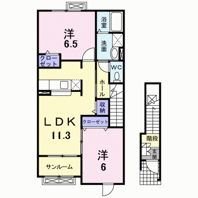 敷金0ヶ月/礼金91,000円/2階/木造2×4/62.69m2