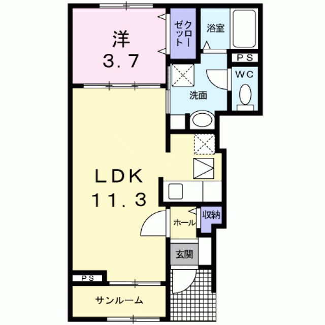 敷金0ヶ月/礼金1ヶ月/1階/木造2×4/34.71m2