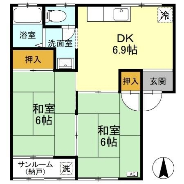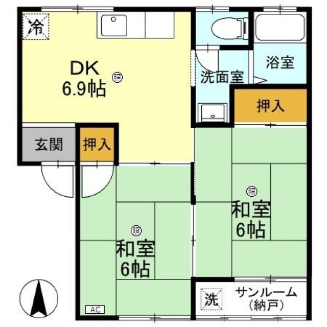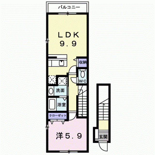 敷金0ヶ月/礼金0ヶ月/2階/木造/59.77m2