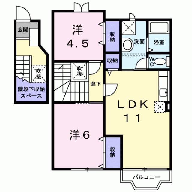 敷金0ヶ月/礼金1ヶ月/2階/軽量鉄骨/45.34m2