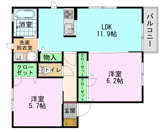 敷金0ヶ月/礼金81,500円/2階/木造2×4/61.96m2