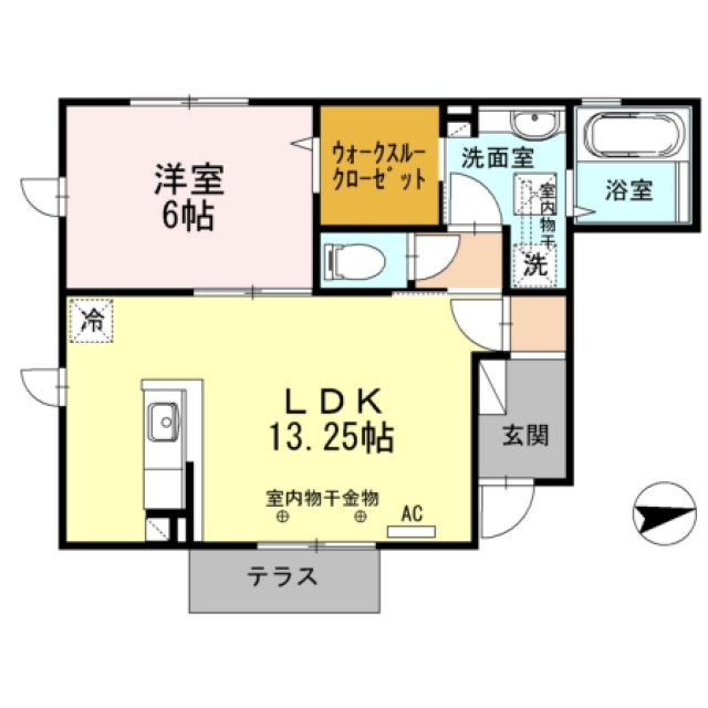 敷金0ヶ月/礼金82,500円/1階/木造2×4/48.27m2