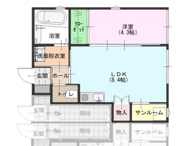 敷金0円/礼金43,000円/1階/軽量鉄骨/31.48m2