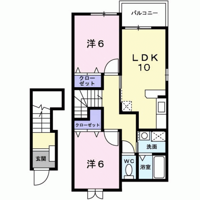敷金0ヶ月/礼金92,500円/2階/木造2×4/61.96m2