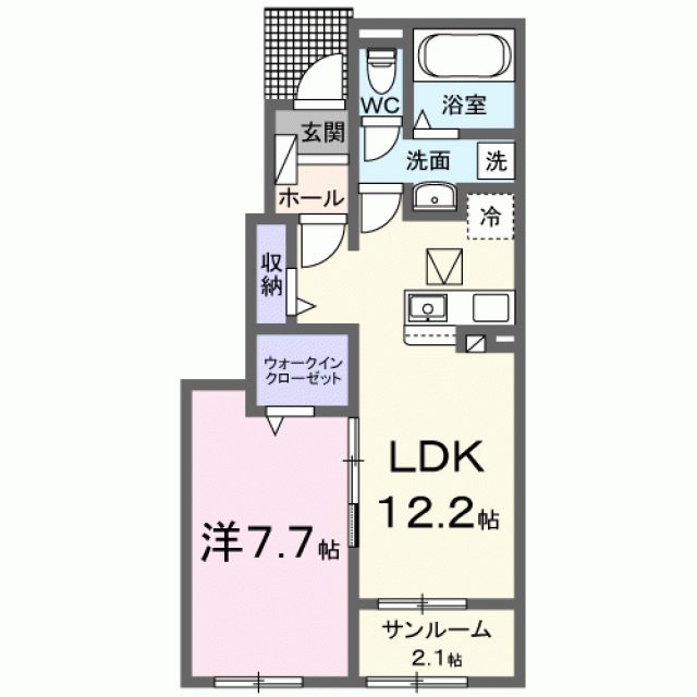 敷金0ヶ月/礼金76,000円/1階/木造2×4/33.68m2
