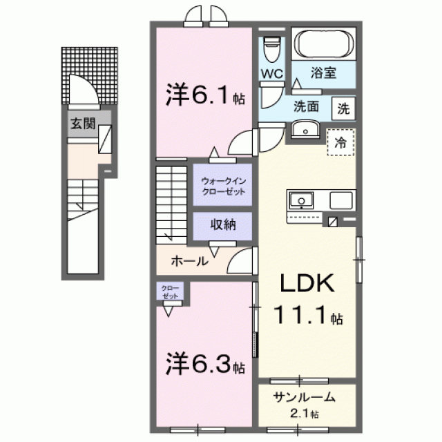 敷金0ヶ月/礼金1ヶ月/2階/木造/62.05m2