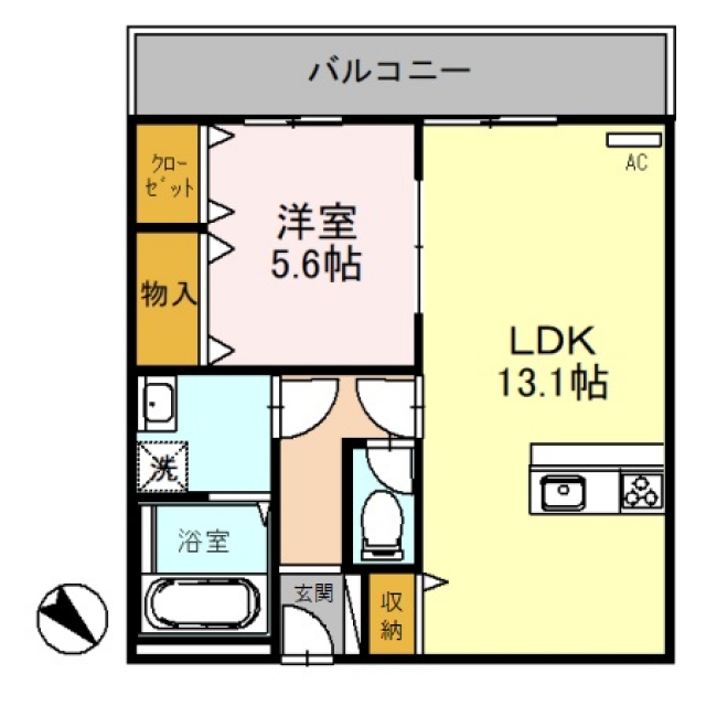 敷金0ヶ月/礼金2ヶ月/1階/軽量鉄骨/45.51m2