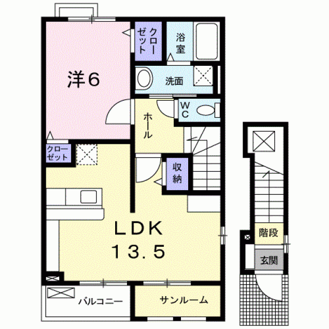 敷金0ヶ月/礼金1ヶ月/2階/木造/41.96m2