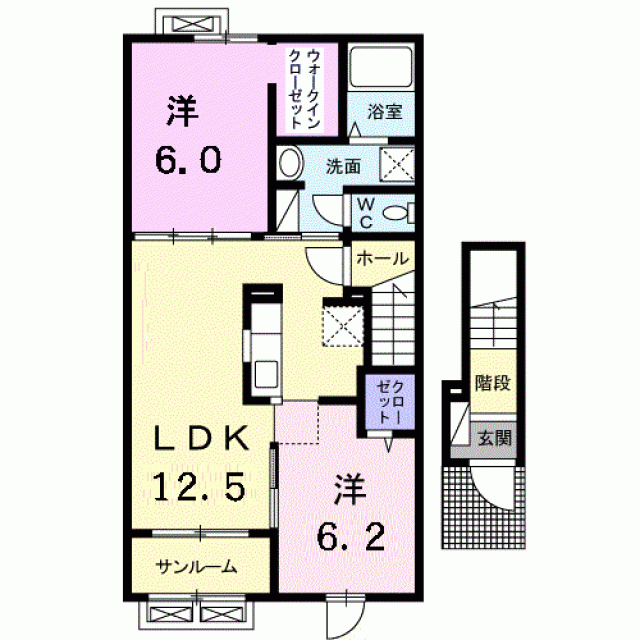 敷金0ヶ月/礼金62,000円/2階/軽量鉄骨/40.43m2