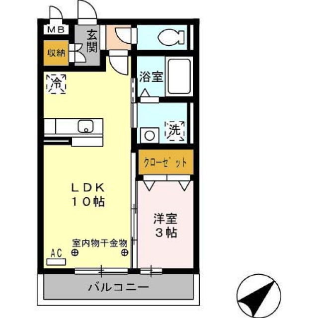 敷金0ヶ月/礼金100,000円/2階/軽量鉄骨/36.29m2
