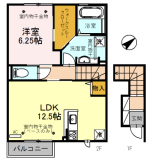 - LDK12.5、洋室6.25、ウォークインクローゼット、バルコニー