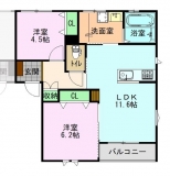 - LDK11.6、洋室6.2、洋室4.5、バルコニー